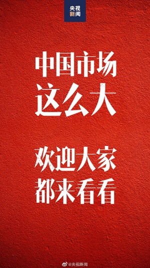 中国老百姓有一句话,叫作“世界那么大,我想去看看”。在这里我要说,中国市场这么大,欢迎大家都来看看。