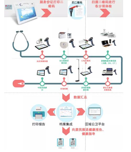 勤成“社区医疗健康智能解决方案”基于勤成异构接入系统,可将医院现有LIS、LIS、PAC、数字化接种、公卫平台、健康扶贫、妇幼保健系统、慢病直报等系统横向打通,重新塑造新的基于本院业务所需的功能应用和数据平台,适用于院内院外信息一体化,医疗与健康管理一体化,可将院内业务流程根据所需进行重塑。对诊疗场景、公卫体检场景、远程会诊场景、付费场景,签约服务场景、挂号场景进行智能化、自助式物联网改造,使之减少成本、提高工作效率,可视数字化展现,达到社区医疗健康智能化的效果。